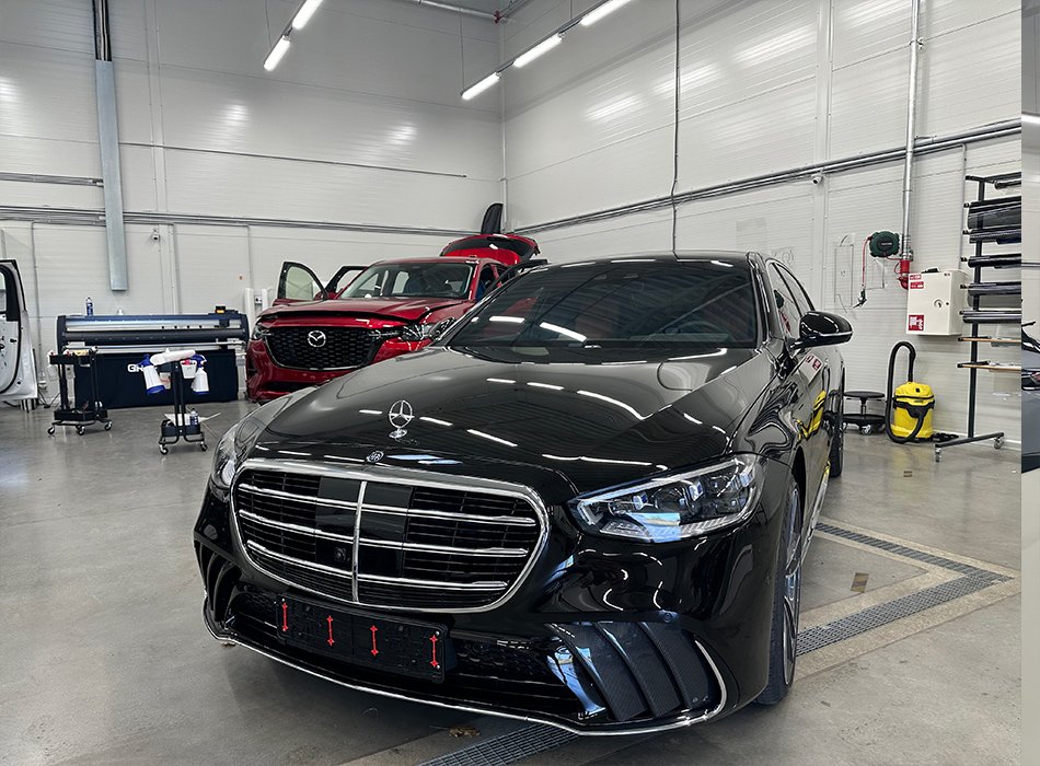 MB S class pilnai apklijuotas apsaugine skaidria blizgia PPF plėvele