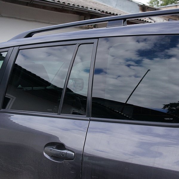 Pakankamai tamsi, juodo atspalvio plėvelė automobilių langų tamsinimui