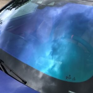 Sodriai mėlynai/žalios chameleono atspalvio priekinių langų tamsinimo plėvelė